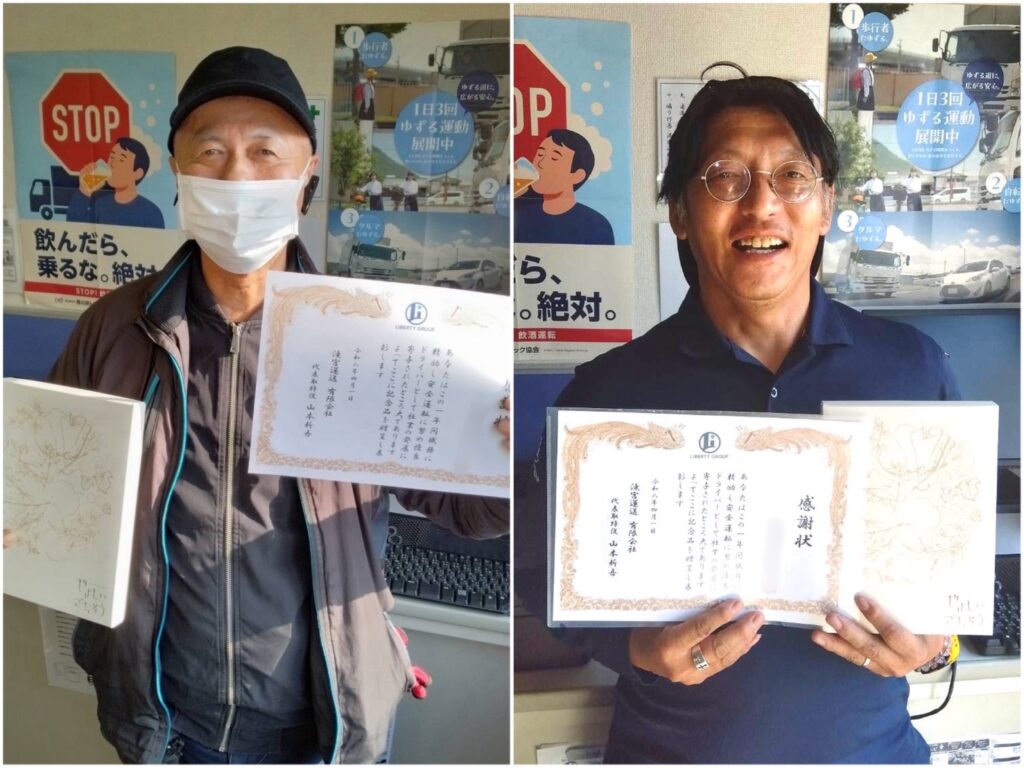 滝宮運送では、2名の方へ表彰いたしました。